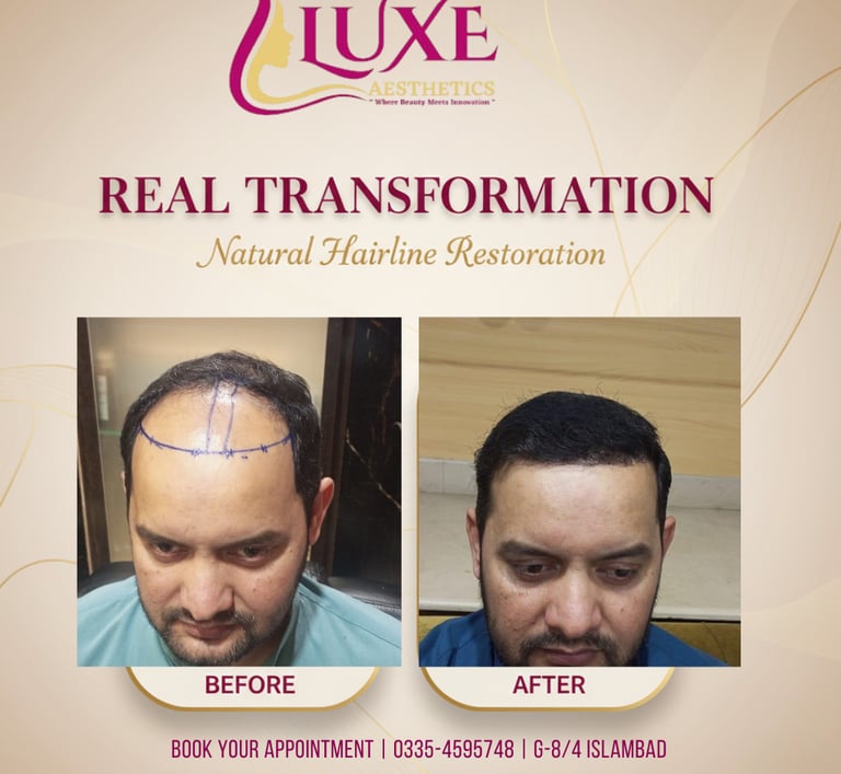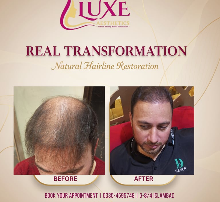 At Luxe Aesthetics, we specialize in natural-looking hair transplants that help you regain a fuller, youthful hairline. Using advanced techniques such as FUE (Follicular Unit Extraction) and DHI (Direct Hair Implantation), our expert surgeons ensure maximum graft survival, minimal downtime, and lifelong results.