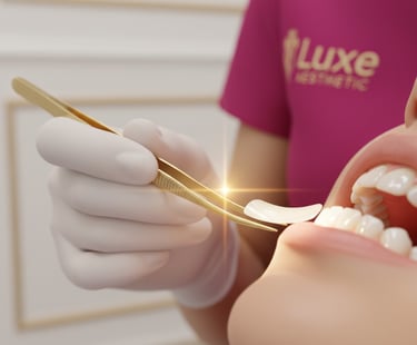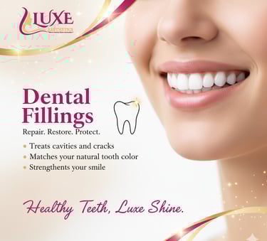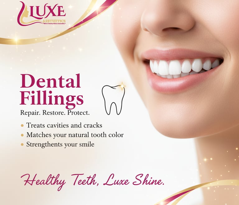 At Luxe Aesthetics, we specialize in aesthetic (tooth-colored) fillings that blend seamlessly with your natural teeth — so no one can tell you’ve had dental work done.