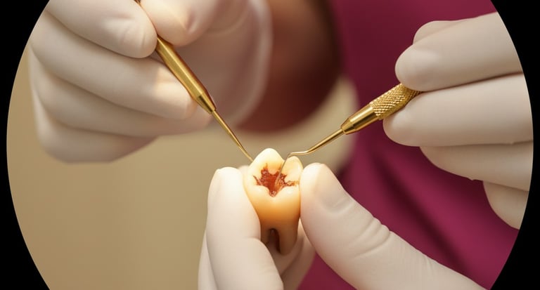 All decayed or damaged tooth structure is carefully removed, leaving behind only healthy enamel and dentin.