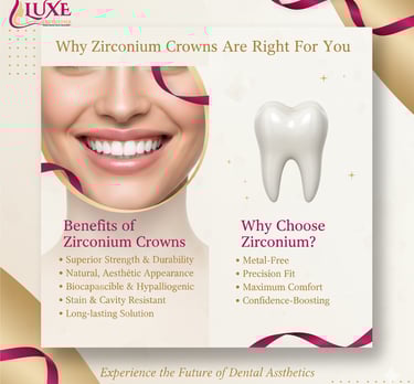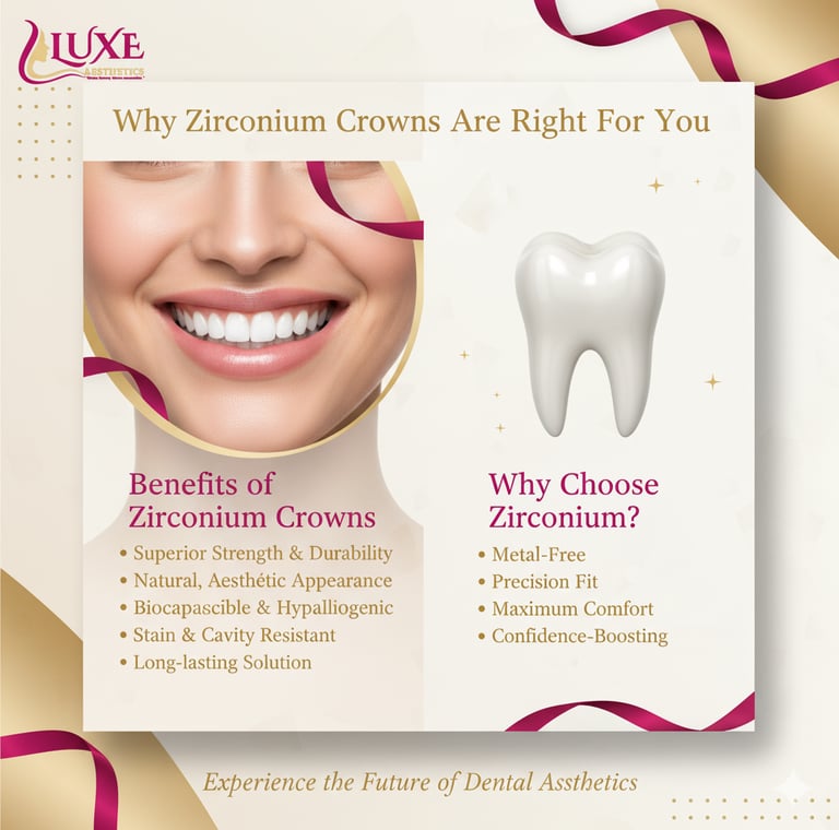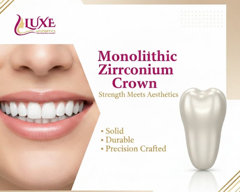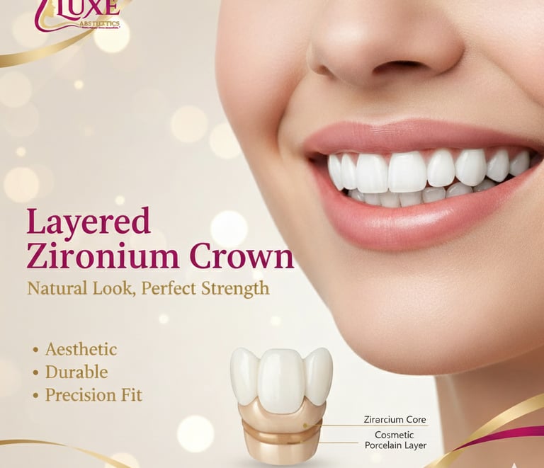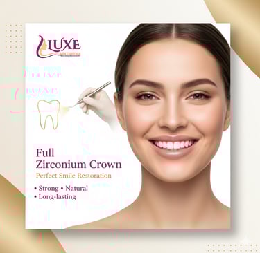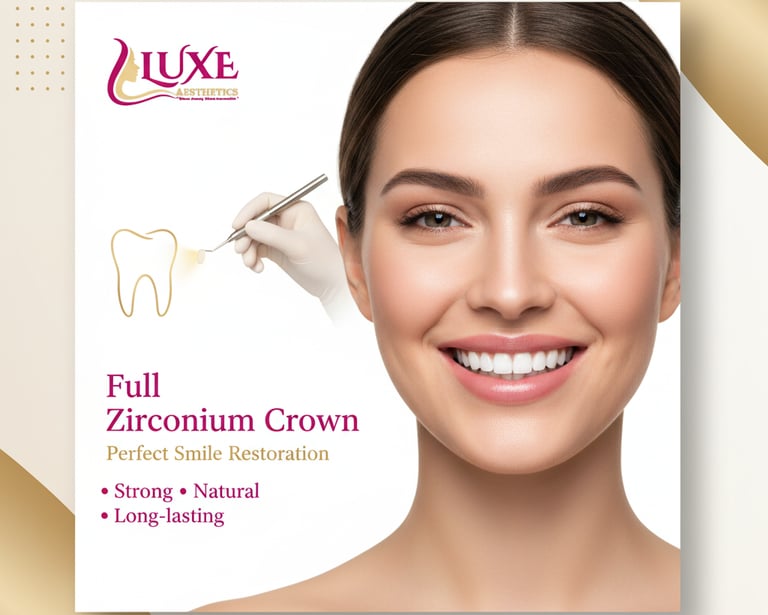 At Luxe Aesthetics Islamabad, we offer Zirconium Crown Treatment — the most advanced and aesthetic solution for restoring damaged, discolored, or weakened teeth.