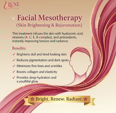 At Luxe Aesthetics Islamabad, Mesotherapy is more than just a treatment — it’s a complete skin and hair revival therapy.