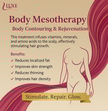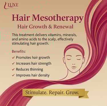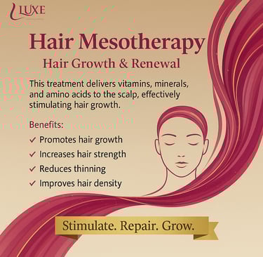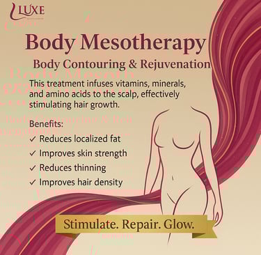 At Luxe Aesthetics Islamabad, we offer Mesotherapy, a scientifically advanced treatment designed to nourish, repair, and rejuvenate your skin and scalp from within.