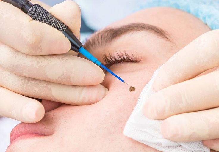 Uses radio wave technology to precisely vaporize mole tissue without damaging surrounding skin
